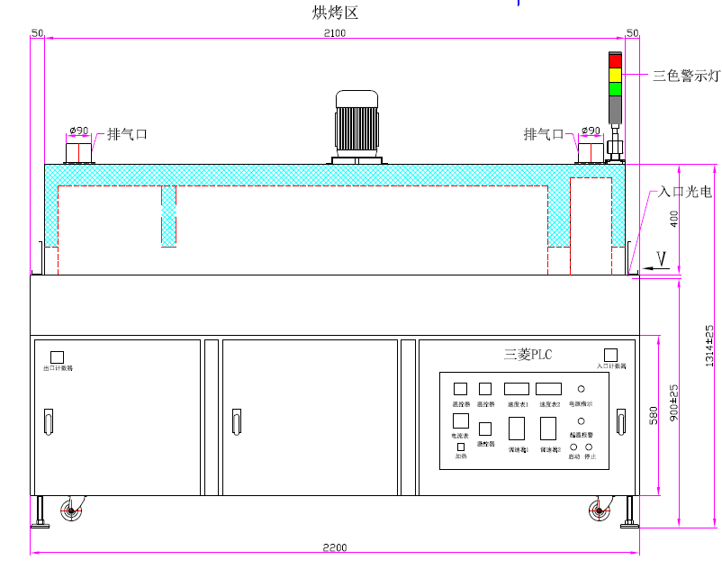 | 5. 入口高度:1000mm | 6. 超温停止加热并报警 |