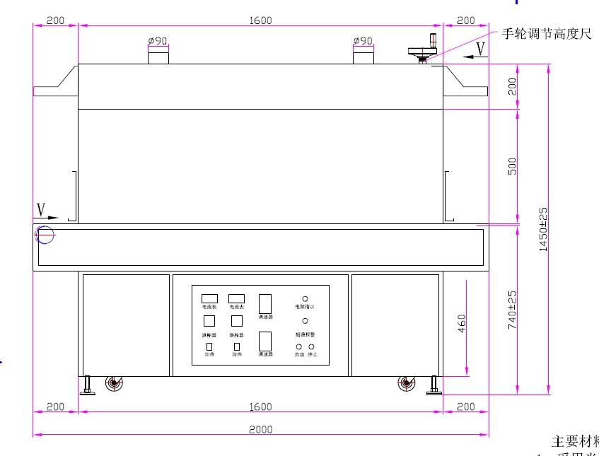 | 3、采用无级调速 | 4、输送材料:特氟龙网带(双通道、正反方向) |