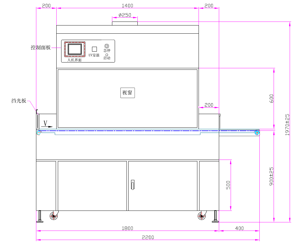 | 5、钣金灯箱安装进口插片反射器 | 6、UV灯垂直高度可电动调节(只限上灯) |