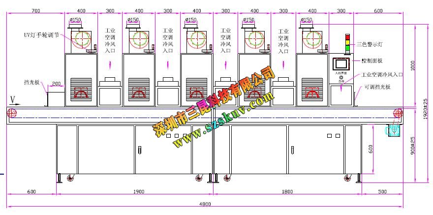 | 1、UV灯功率:6.0kw*5支(卤素灯) | 2、UV灯总长:620mm、弧长:500mm |