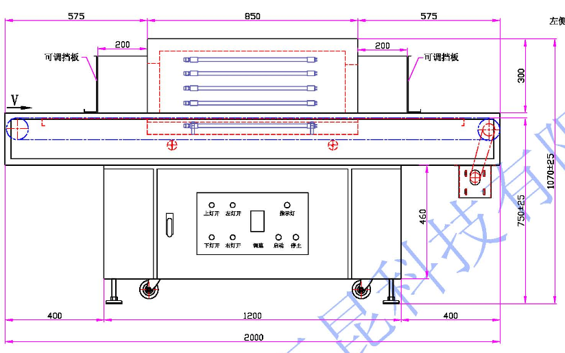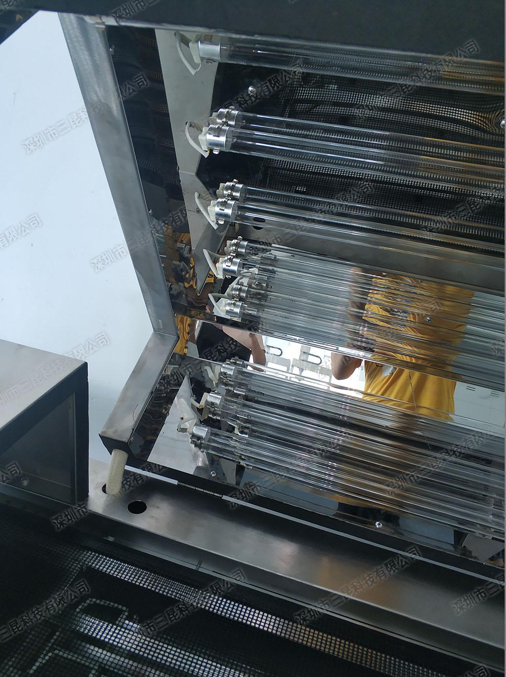 | 3、UV灯尺寸:600mm | 4、输送材料:特氟龙网带(导条防偏网带) |