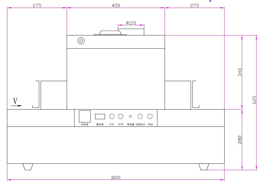 | 5.钣金灯箱安装插片反射器和光学平面玻璃 | 6.输送材料:不锈钢网带 |
