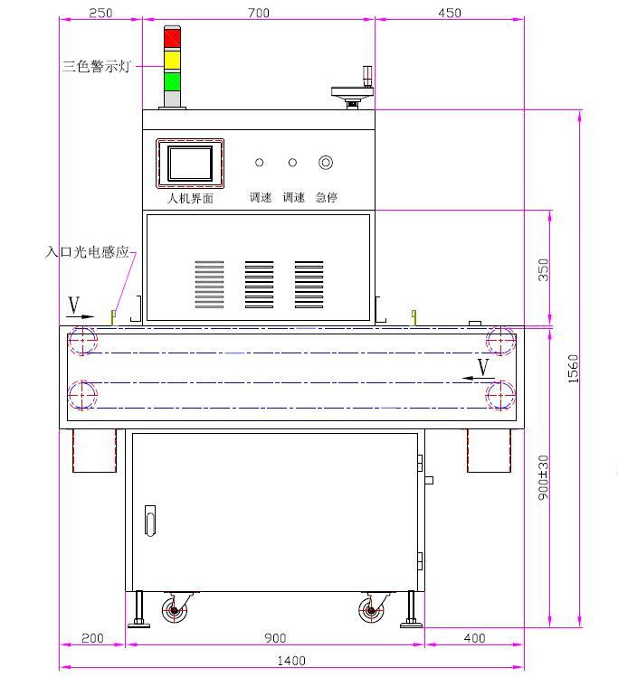| 9、输送宽度:172mm(可微调) | 10、输送速度:0~5m/min |