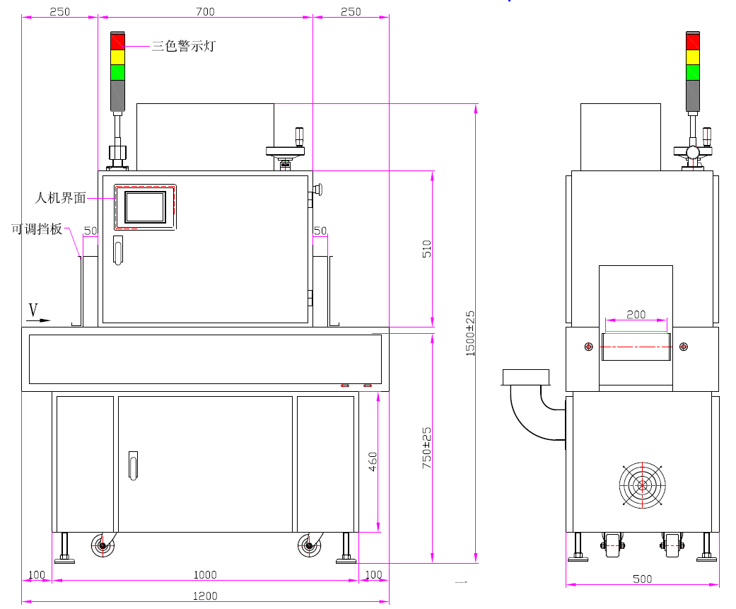 | 9、输送宽度:200mm | 10、输送速度:0~7m/min |