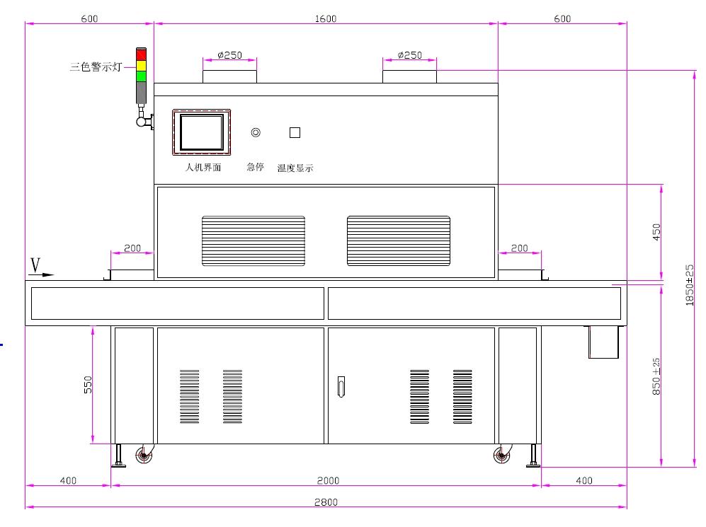 | 11、输送速度:0.5~12m/min(变频器调速) | 12、 输送方向:操作面从左到右 |