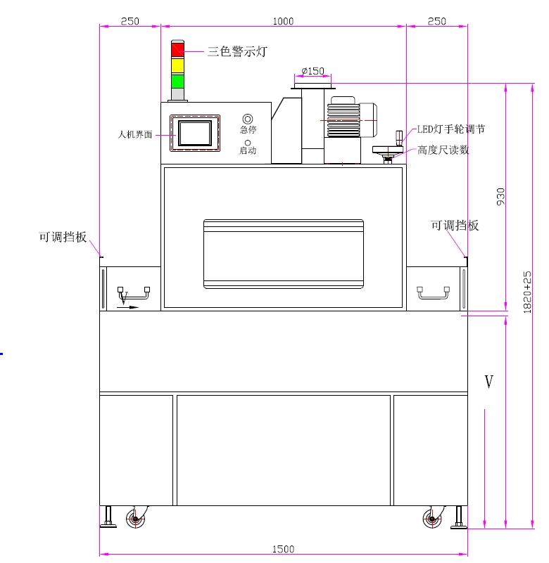 | 5、钣金灯箱安装进口插片反射器 | 6、UV灯高度手动调节 |