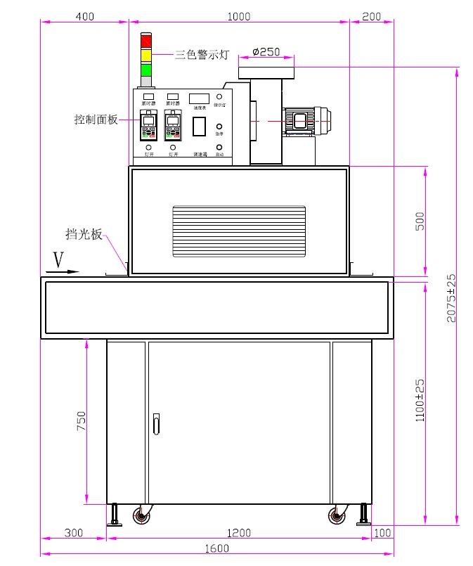 | 一、UV灯功率:6.0kw1支、8kw1支 | 二、UV灯总长:826mm、弧长:700mm |