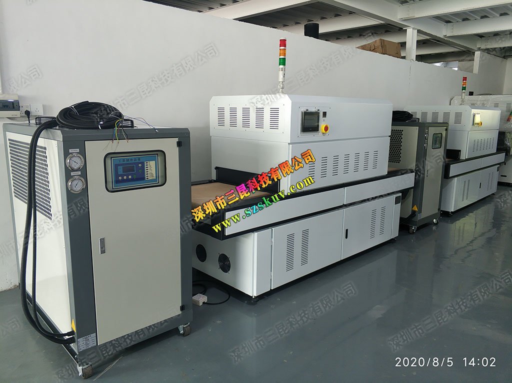 三昆生产的led uv固化灯经过水冷和密封。 灯体的前部也由石英表面材料制成。 内部水冷却设计用于快速冷却,并配有电源和水冷却器。 当紫外线固化灯通电以加热灯体时,灯珠的芯片被激发而转变为激发态,而当激发态返回到基态时,它发出紫外光。